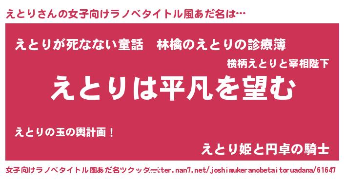 | 意味不明あだ名 | 『とにかく怪しいえとり』 |