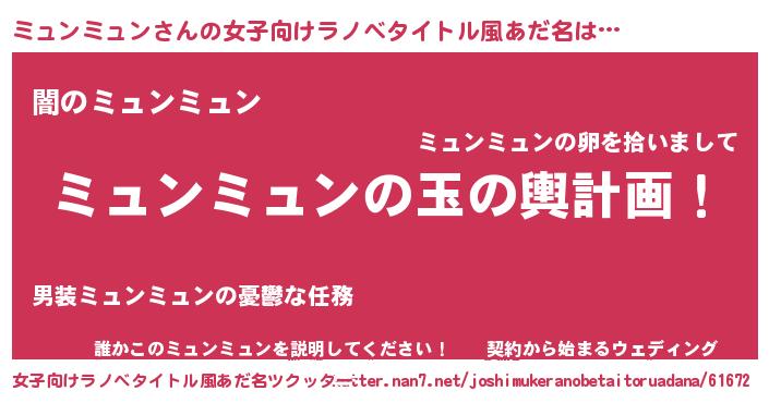 | ヒーロー風カッコイイあだ名 | 『究極戦士ミュンミュン』『銀牙騎士ミュ』 |