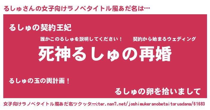 | ヘコむあだ名 | 『るしゅ(笑)』『るし太郎』 |