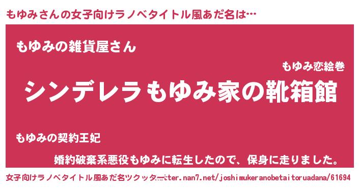 | 男性向けラノベタイトル風あだ名 | 『冴えないもゆみの育てかた』 |