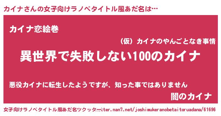 | 男性向けラノベタイトル風あだ名 | 『カイナという概念が存在しない退屈な世界 』 |