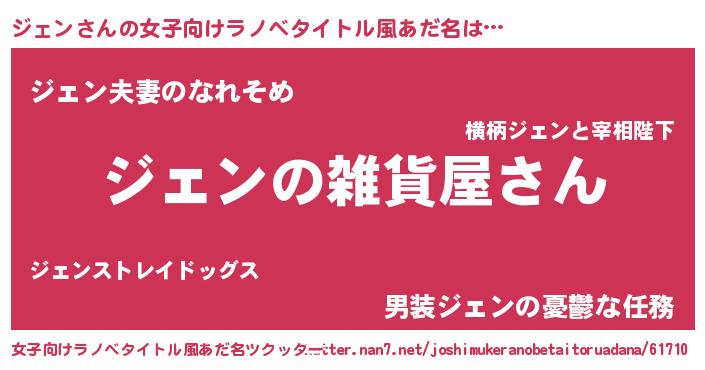 | 男性向けラノベタイトル風あだ名 | 『やはりジェンの青春ラブコメはまちがっている 』 |