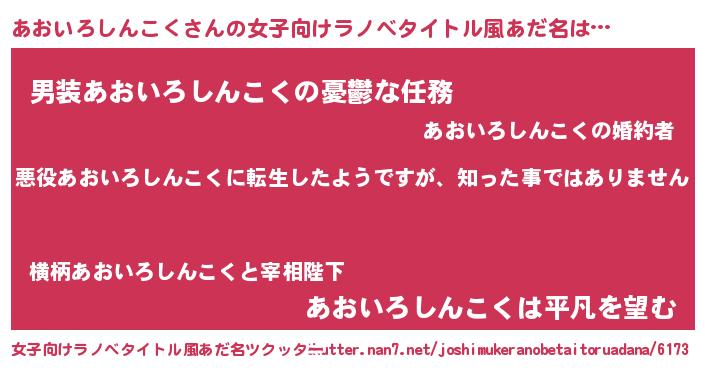 | 男性向けラノベタイトル風あだ名 | 『この素晴らしい世界にあおいろしんこくを!』 |