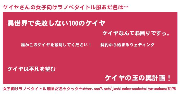 | 男性向けラノベタイトル風あだ名 | 『ケイヤアートオンライン』 |