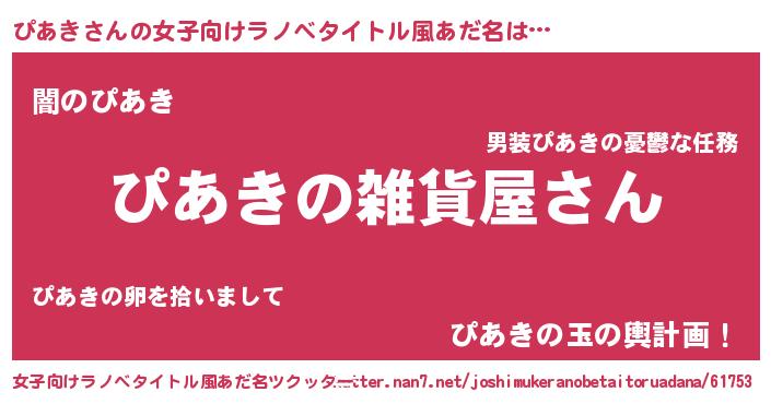 | 男性向けラノベタイトル風あだ名 | 『やはりぴあきの青春ラブコメはまちがっている 』 |