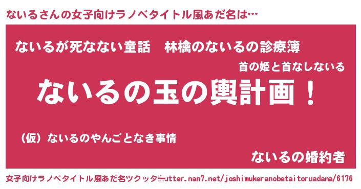 | 男性向けラノベタイトル風あだ名 | 『ないる~年齢イコール彼女いない歴の魔法使い~』 |