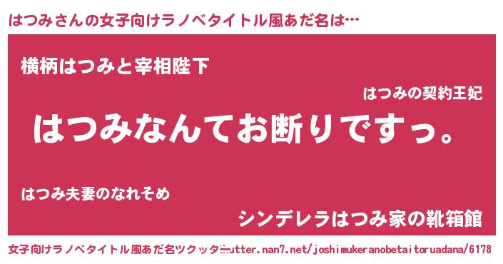 | 男性向けラノベタイトル風あだ名 | 『魔法科高校のはつみ』『緋弾のハツミ』 |