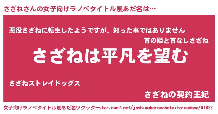 | 意味不明あだ名 | 『とにかく怪しいさざね』『自称さざね』 |