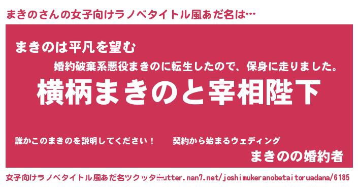 | 男性向けラノベタイトル風あだ名 | 『まきのに滅ぼされるだけの簡単なお仕事です』 |