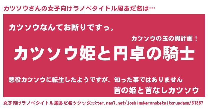 | 男性向けラノベタイトル風あだ名 | 『カツソウアートオンライン』 |