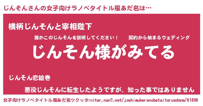 | 男性向けラノベタイトル風あだ名 | 『じんそんの嫁は女の子じゃないと思った?』 |