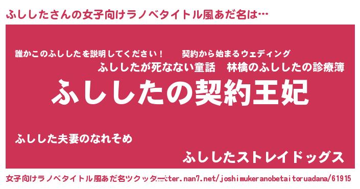 | 胡散臭い通販商品みたいなあだ名 | 『来世でも幸せになれる健康食品…その名も「ふしした」』 |