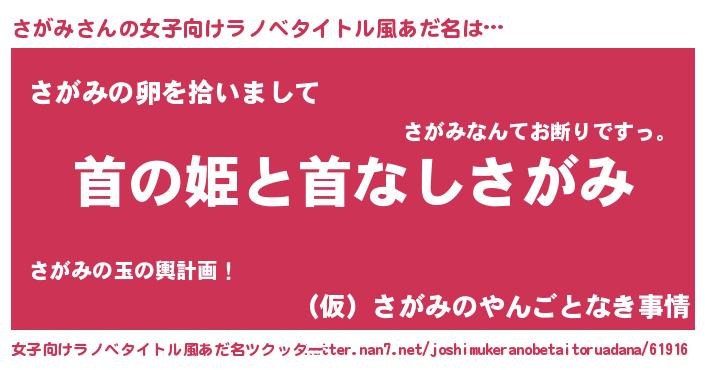 | 男性向けラノベタイトル風あだ名 | 『はたらくさがみさま!』『さがみの憂鬱』 |