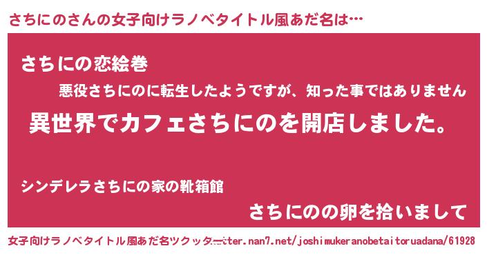 | 胡散臭い通販商品みたいなあだ名 | 『前代未聞の健康食品…その名も「さちにの」』 |