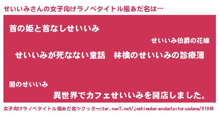 | 意味不明あだ名 | 『住所不定無職せいいみ(4歳)』 |