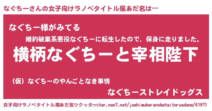 | ヒーロー風カッコイイあだ名 | 『幻影騎士ナグ』『最強戦士ナグチー』 |