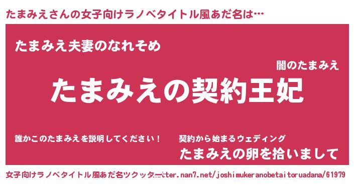 | 男性向けラノベタイトル風あだ名 | 『たまみえという概念が存在しない退屈な世界 』 |