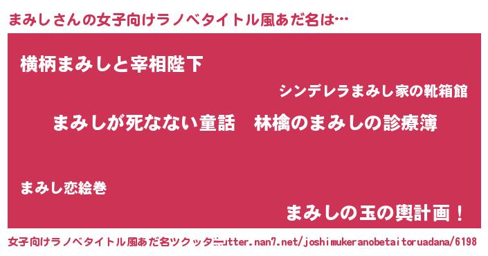 | 男性向けラノベタイトル風あだ名 | 『魔弾の王とまみし』 |