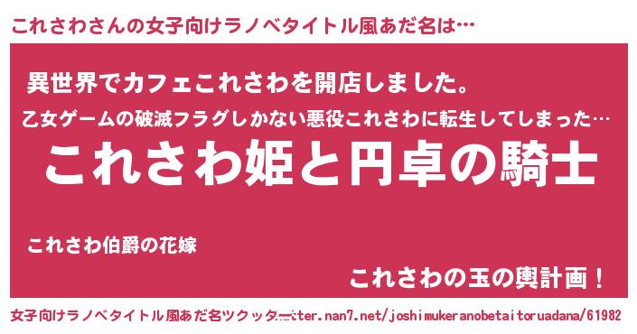 | 肩書あだ名 | 『これさわ社長令嬢』『これさわ先生』 |