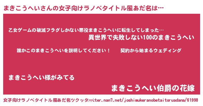 | 胡散臭い通販商品みたいなあだ名 | 『億万長者になれる水晶球…その名も「まきこうへい」』 |