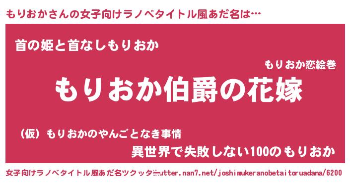 | 男性向けラノベタイトル風あだ名 | 『やはりもりおかの青春ラブコメはまちがっている 』 |