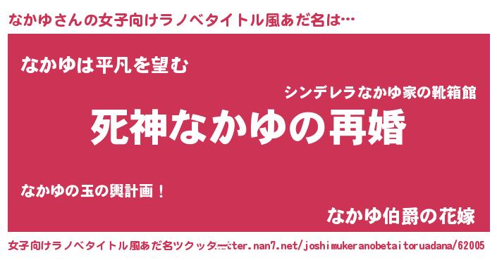 | 男性向けラノベタイトル風あだ名 | 『ノーゲーム・ノーナカユ』 |