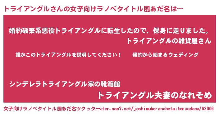 | 胡散臭い通販商品みたいなあだ名 | 『億万長者になれるブレスレット…その名も「トライアングル」』 |