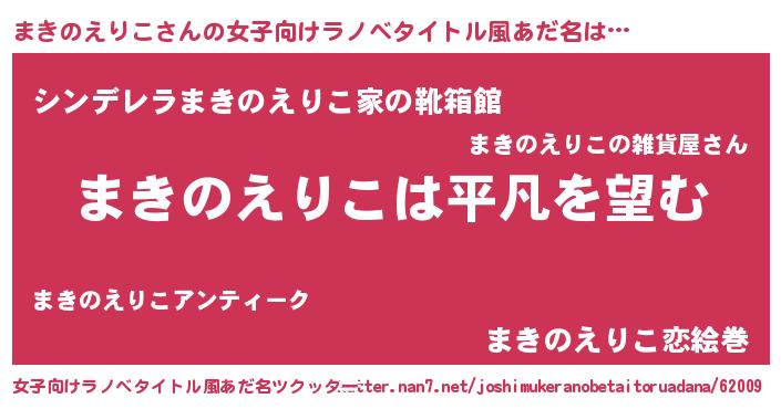 | 男性向けラノベタイトル風あだ名 | 『ダンジョンにまきのえりこを求めるのは間違っているだろうか』 |