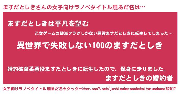 | ヘコむあだ名 | 『ますだとしき(笑)』『ます太郎』 |