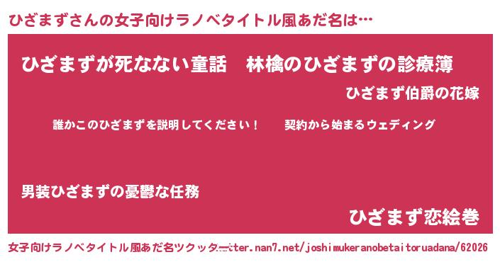 | 男性向けラノベタイトル風あだ名 | 『ヒザマズアートオンライン』 |