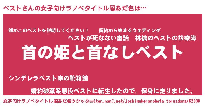 | 男性向けラノベタイトル風あだ名 | 『はたらくベストさま!』『緋弾のベスト』 |