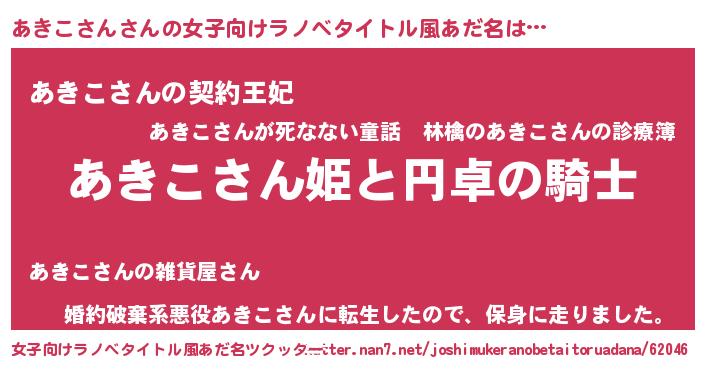 | ファンタジー風あだ名 | 『アキフェル』『アキディッシュ』 |