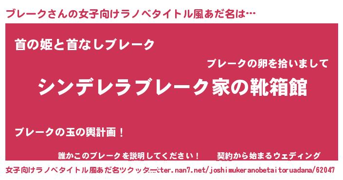 | 男性向けラノベタイトル風あだ名 | 『冴えないブレークの育てかた』 |