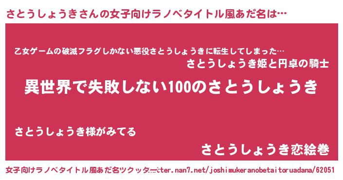 | 胡散臭い通販商品みたいなあだ名 | 『絶対に幸福をもたらす水素水…その名も「さとうしょうき」』 |