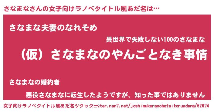 | 男性向けラノベタイトル風あだ名 | 『さなまなの憂鬱』 |