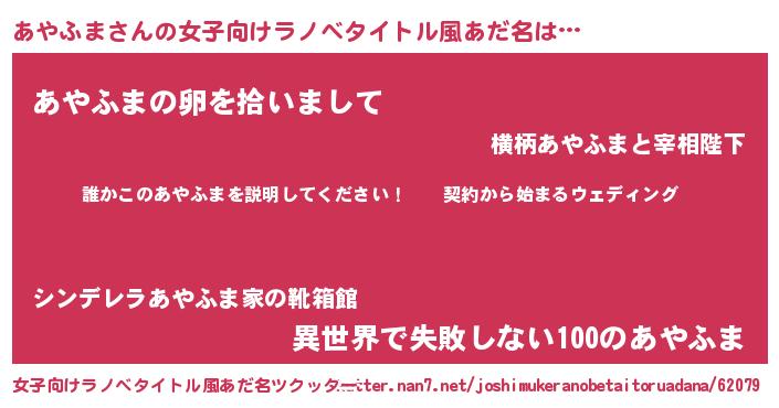 | 胡散臭い通販商品みたいなあだ名 | 『億万長者になれる霊験あらたかなお札…その名も「あやふま」』 |