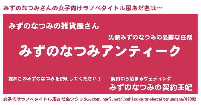 | 胡散臭い通販商品みたいなあだ名 | 『テレビで話題の高麗人参…その名も「みずのなつみ」』 |