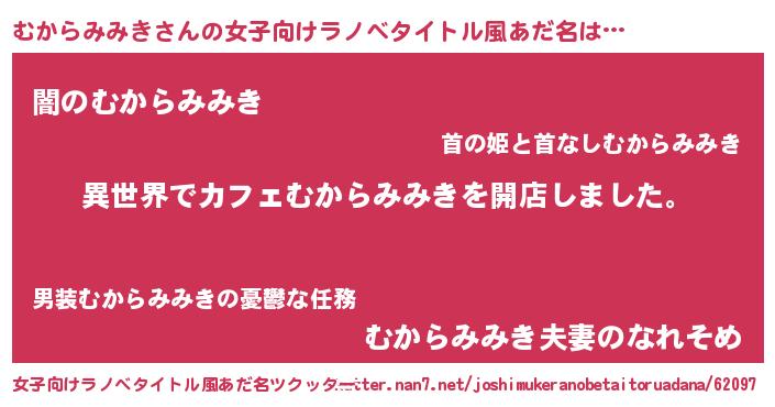 | 男性向けラノベタイトル風あだ名 | 『誰もが恐れるあのむからみみきが、ぼくの専属メイドになるようです。』 |