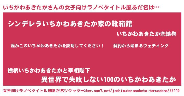| 胡散臭い通販商品みたいなあだ名 | 『億万長者になれるブレスレット…その名も「いちかわあきたか」』 |