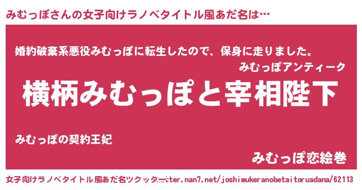 | 男性向けラノベタイトル風あだ名 | 『みむっぽに滅ぼされるだけの簡単なお仕事です』 |