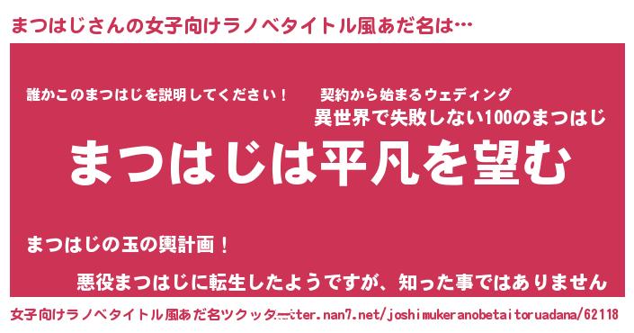 | 男性向けラノベタイトル風あだ名 | 『ダンジョンにまつはじを求めるのは間違っているだろうか』 |