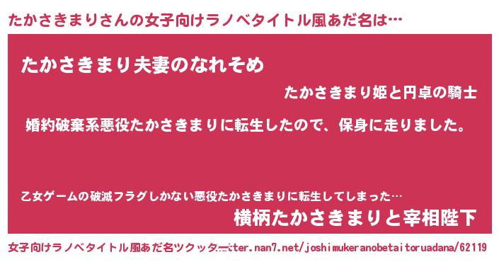 男性向けラノベタイトル風あだ名 | 『タカサキマリスレイヤー』 |