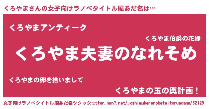 | 男性向けラノベタイトル風あだ名 | 『おまえをオタクにしてやるから、俺をくろやまにしてくれ! 』 |