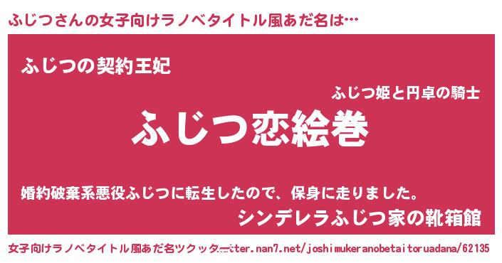 | 男性向けラノベタイトル風あだ名 | 『おまえをオタクにしてやるから、俺をふじつにしてくれ! 』 |
