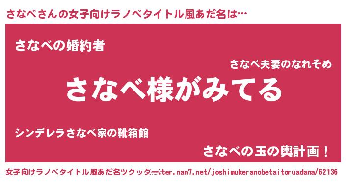 | 男性向けラノベタイトル風あだ名 | 『さなべの嫁は女の子じゃないと思った?』 |