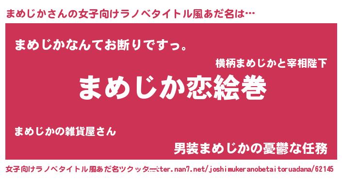 | 男性向けラノベタイトル風あだ名 | 『おまえをオタクにしてやるから、俺をまめじかにしてくれ! 』 |