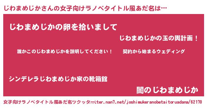 | 男性向けラノベタイトル風あだ名 | 『ジワマメジカアートオンライン』 |