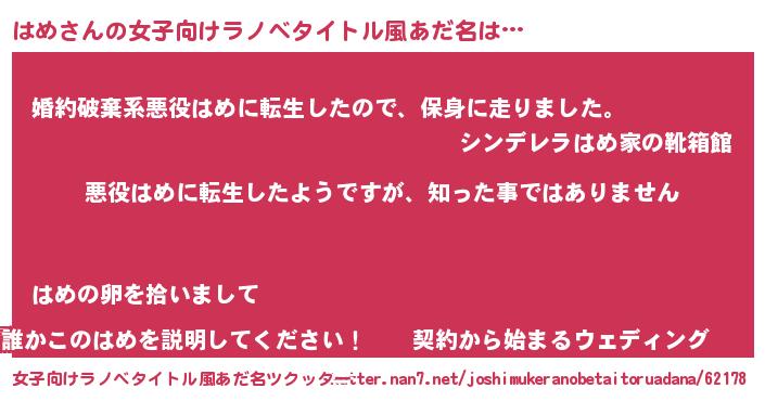 | 男性向けラノベタイトル風あだ名 | 『この素晴らしい世界にはめを!』 |