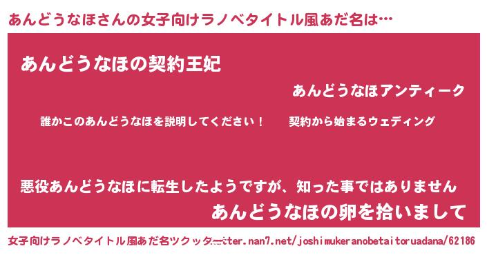 | 男性向けラノベタイトル風あだ名 | 『アンドウナホアートオンライン』 |