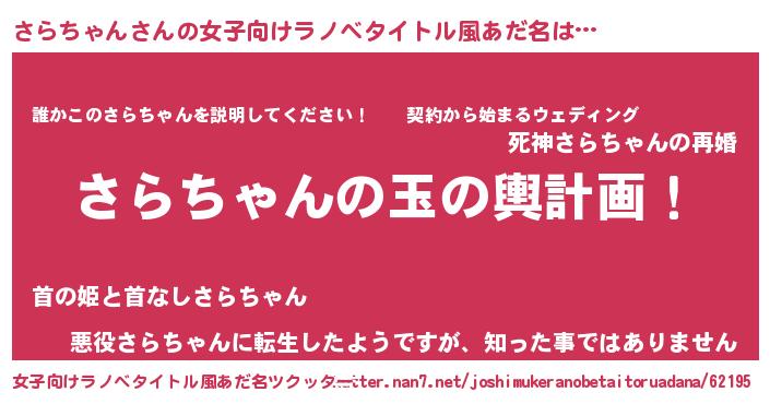 | 意味不明あだ名 | 『ヨモギ科さらちゃん属』 |